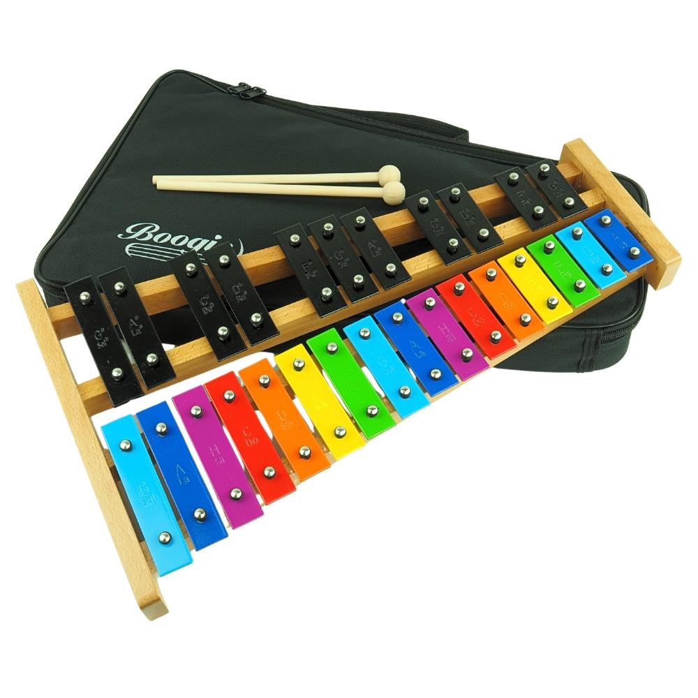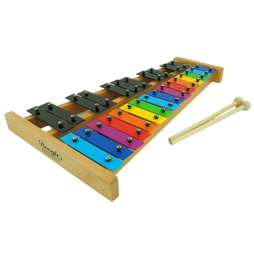 Dzwonki chromatyczne Boogie oferują 27 blaszek – tonów (dźwięków). Przy wyborze dzwonków chromatycznych warto zwrócić uwagę na wybór instrumentu z oczekiwaną przez nas ilością dźwięków. Układ blaszek z 27 tonami odwzorowuje klawiaturę fortepianu. Dzięki temu osoba, która opanuje grę na dzwonkach chromatycznych, łatwiej poradzi sobie z nauką gry na innych instrumentach klawiszowych.